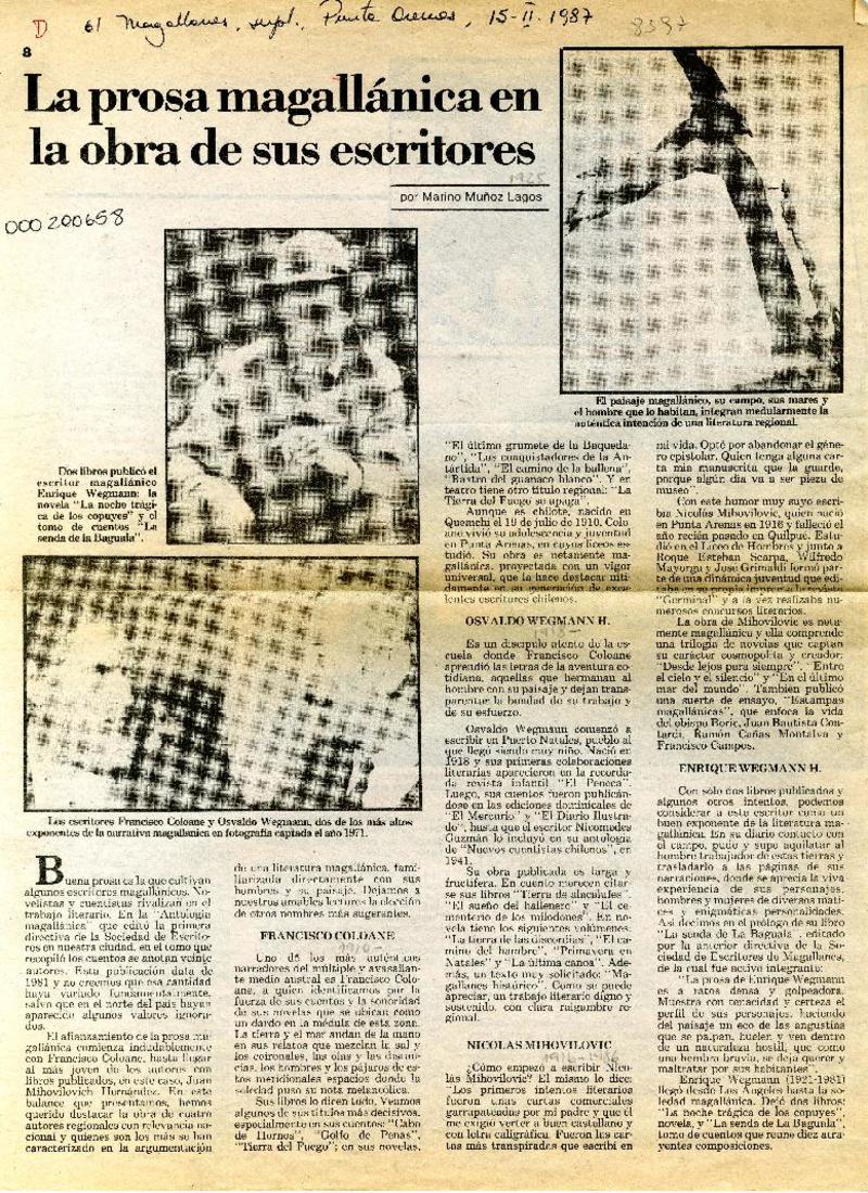 La prosa magallánica en la obra de sus escritores [artículo] Marino Muñoz Lagos.