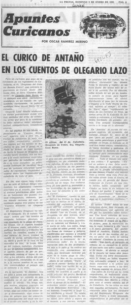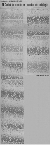 El Curicó de antaño en los cuentos de Olegario Lazo [artículo] Oscar Ramírez Merino.