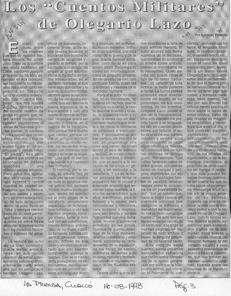 Los "Cuentos militares" de Olegario Lazo [artículo] Ignacio Valente.