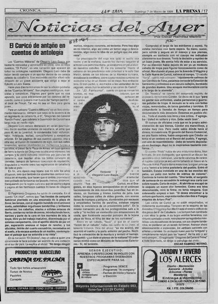 El Curicó de antaño en cuentos de antología [artículo] Oscar Ramírez Merino.