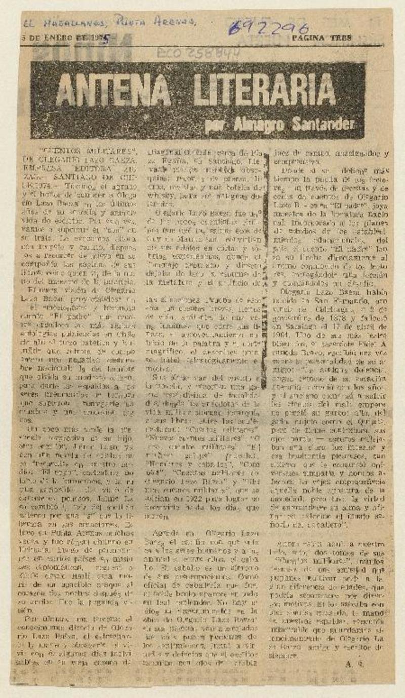 Don Olegario Lazo Baeza y sus "Cuentos militares" [artículo] José Vargas Badilla.