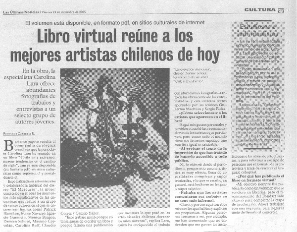 Libro virtual reúne a los mejores artistas chilenos de hoy (entrevistas) [artículo]Rodrigo Castillo R.
