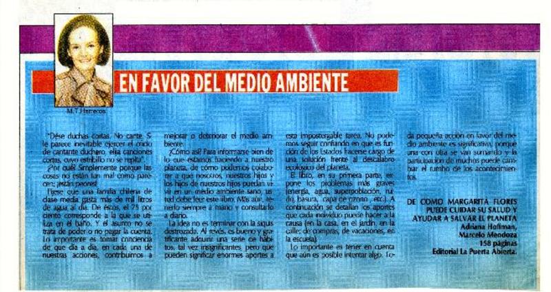 En favor del medio ambiente [artículo] M. T. Herreros.