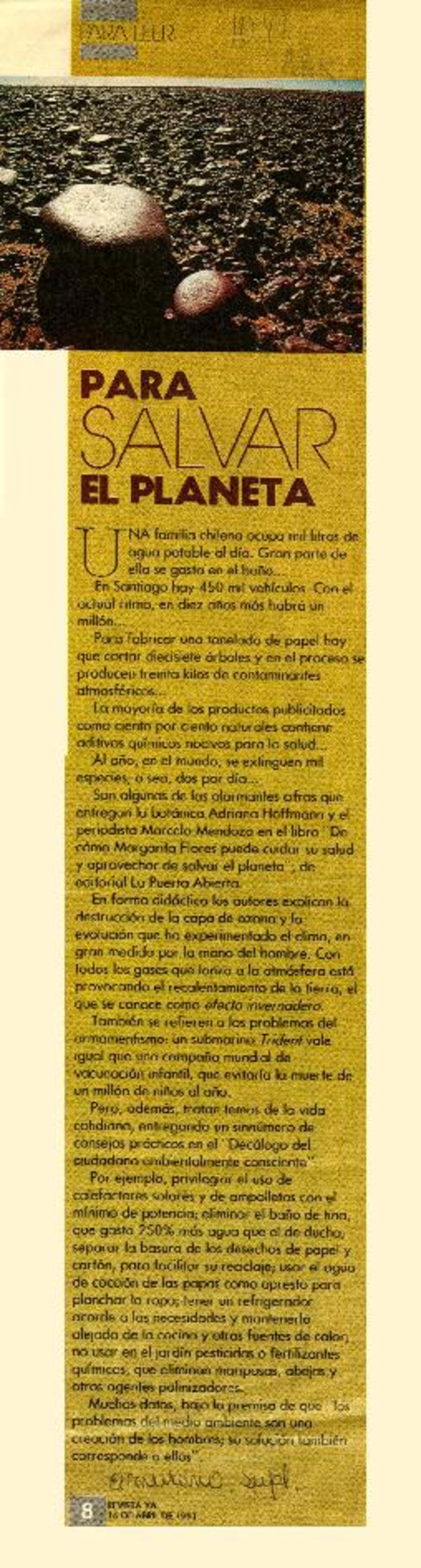 Hoffmann J., Adriana - DE COMO MARGARITA FLORES PUEDE CUIDAR SU SALUD Y AYUDAR A SALVAR EL PLANETA - MENDOZA, MARCELO