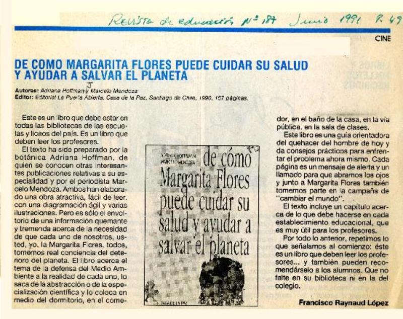 De cómo Margarita Flores puede cuidar su salud y ayudar a salvar el planeta [artículo] Francisco Raynaud López.