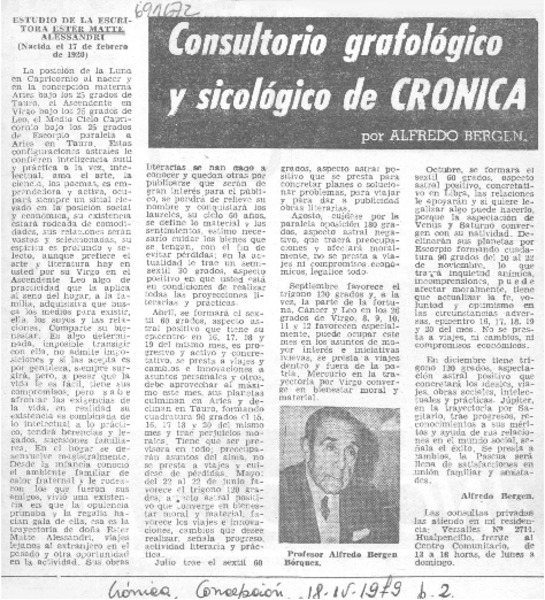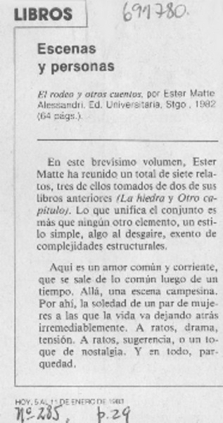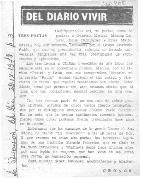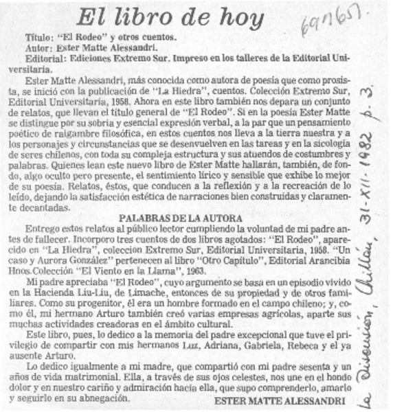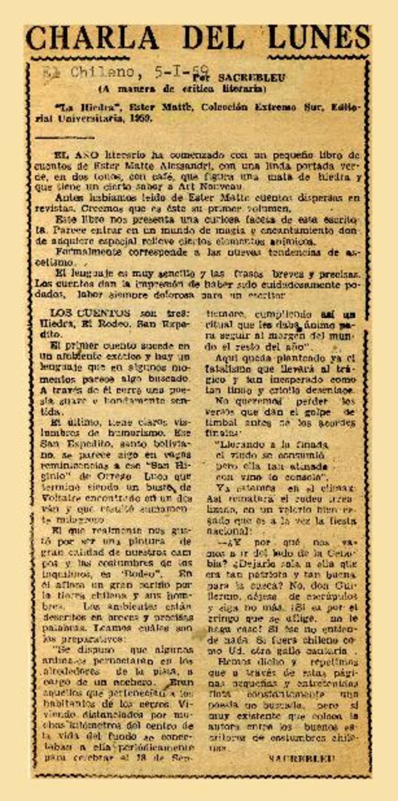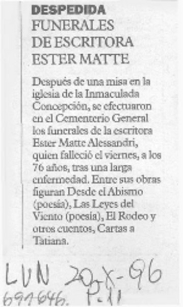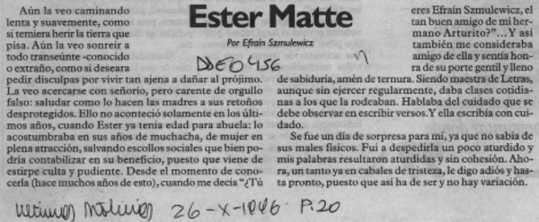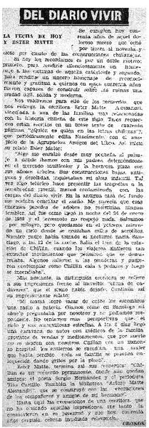 La fecha de hoy y Ester Matte [artículo] Cronos.