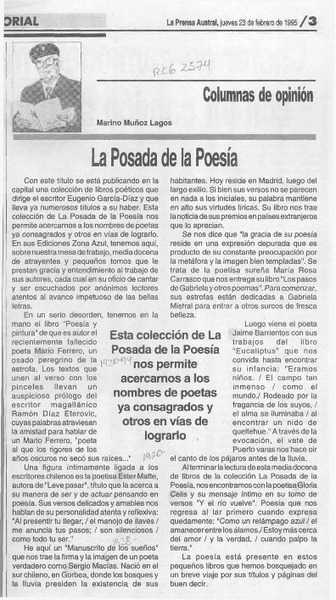 La posada de la poesía [artículo] Marino Muñoz Lagos.