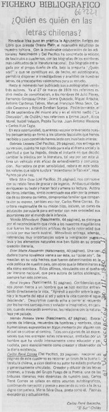 ¿Quién es quién en la letras chilenas? [artículo] Carlos René Ibacache.