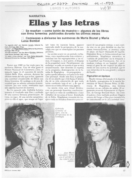 Dos narradoras chilenas [artículo] Andrés Sabella.