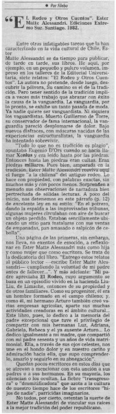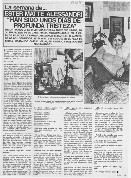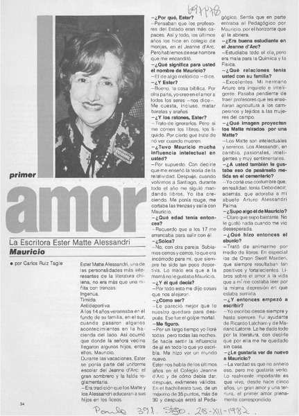La escritora Ester Matte Alessandri : [entrevista] [artículo] Carlos Ruiz-Tagle.
