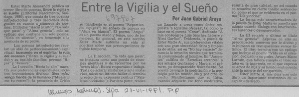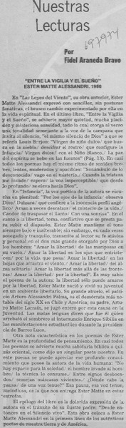 Entre la vigilia y el sueño" [artículo] Fidel Araneda Bravo.