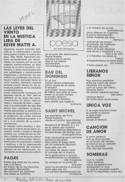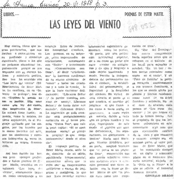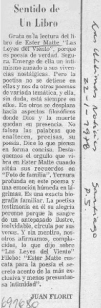 Las leyes del viento en la mística lira de Ester Matte A. [artículo] Delia Domínguez.