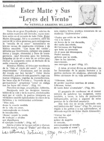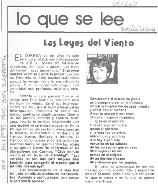 Ester Matte y sus "Leyes del viento" [artículo] Hermelo Arabena Williams.