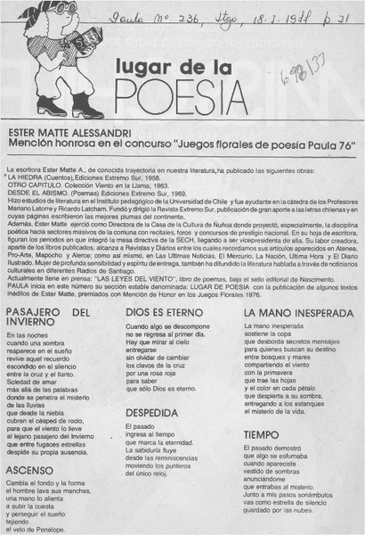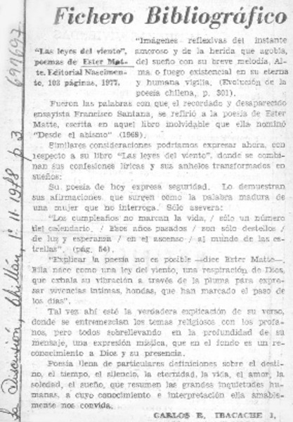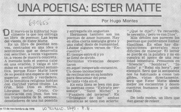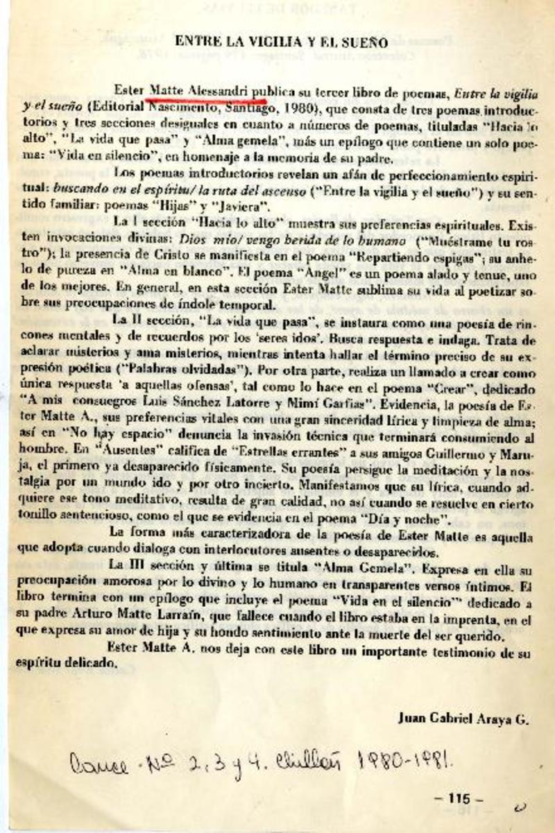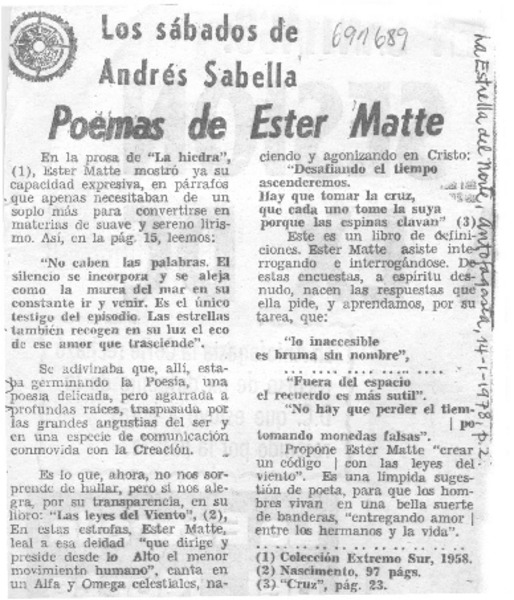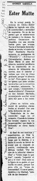 Poemas de Ester Matte [artículo] Andrés Sabella.