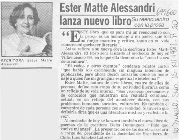 Ester Matte Alessandri lanza nuevo libro [artículo]
