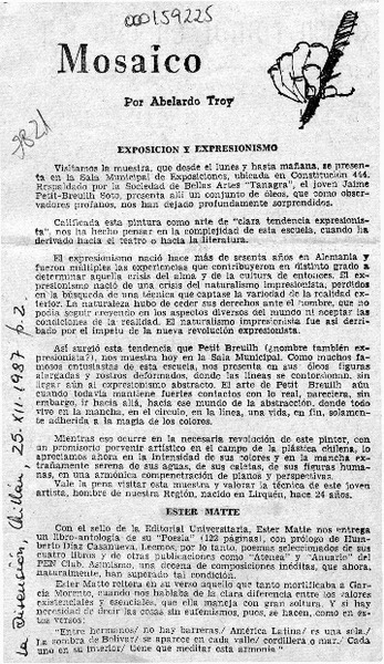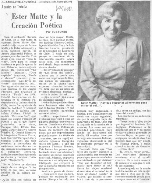 Ester Matte, madrina de todos [artículo] Luis Alberto Mansilla.