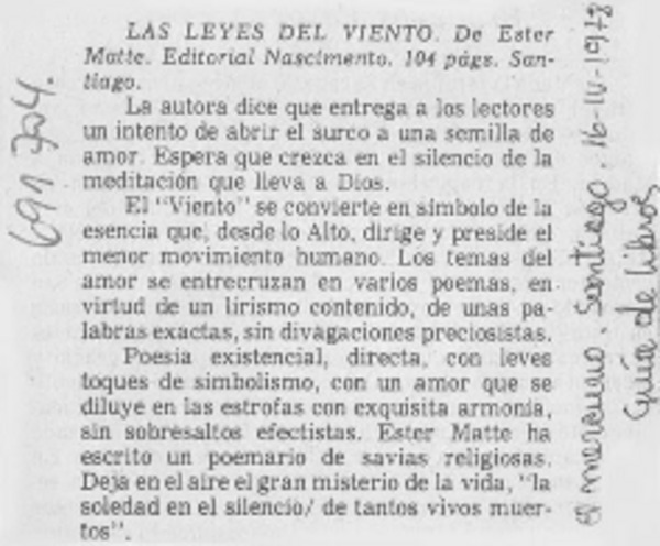 Matte, Ester - Autoras chilenas - Leyes del viento