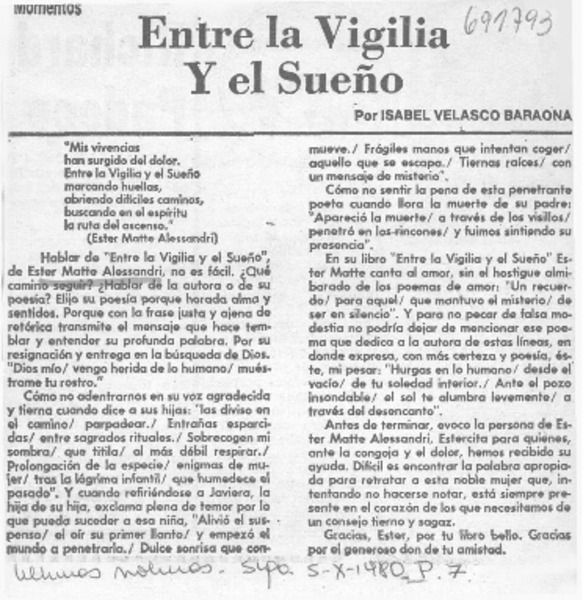Entre la vigilia y el sueño [artículo] Isabel Velasco Baraona.