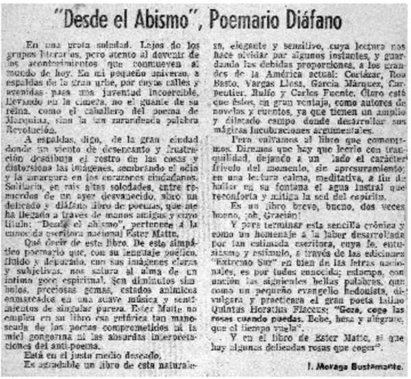 "Desde el abismo", poemario diáfano [artículo] I. Moraga Bustamante.