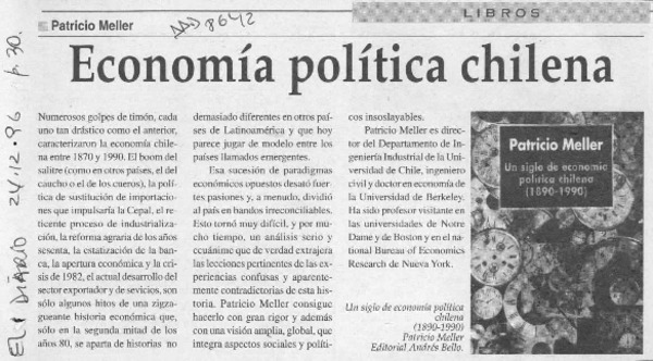 MELLER, PATRICIO - SIGLO DE ECONOMIA POLITICA CHILENA (1890-1990)