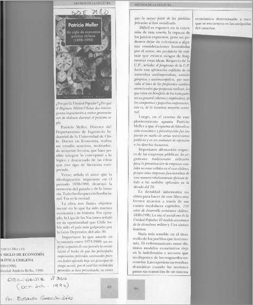 Un siglo de economía política chilena (1890-1990) [artículo] Carlos Valdivieso Ahnfelt.