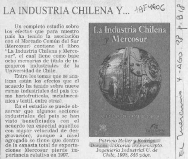 MELLER, PATRICIO - Donoso, Rodrigo - Industria chilena y Mercosur - INDUSTRIA CHILENA Y MERCOSUR