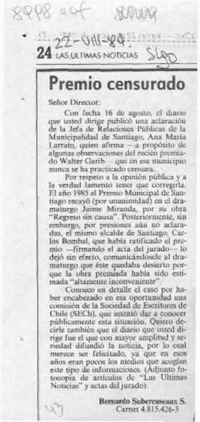 Premio censurado [artículo] Bernardo Subercaseaux S.