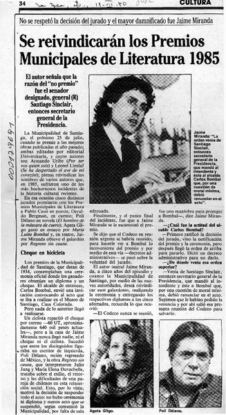 Se reivindicarán los Premios Municipales de Literatura 1985 [artículo].
