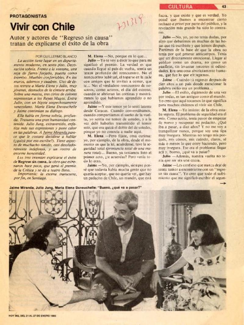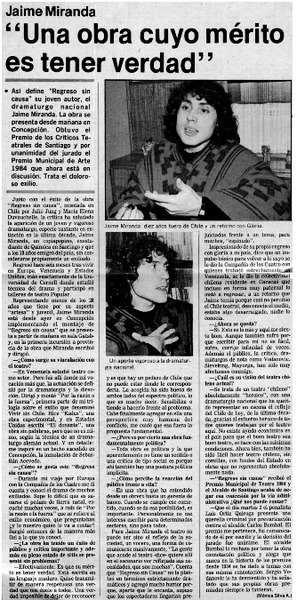 Autores chilenos - Miranda, Jaime - [entrevista] - Regreso sin causa
