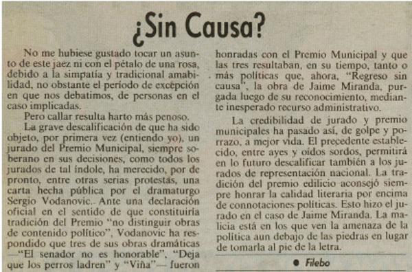 Jaime Miranda, "Regreso sin causa". [artículo]