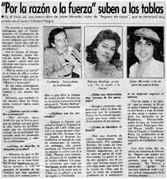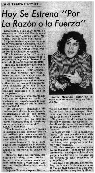 Autores chilenos - Miranda, Jaime - Entrevista - Por la razón o la fuerza