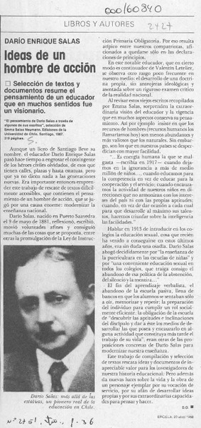 El pensamiento de Dario Salas, a través de algunos de sus escritos [artículo] Elsa Peralta Mongge.