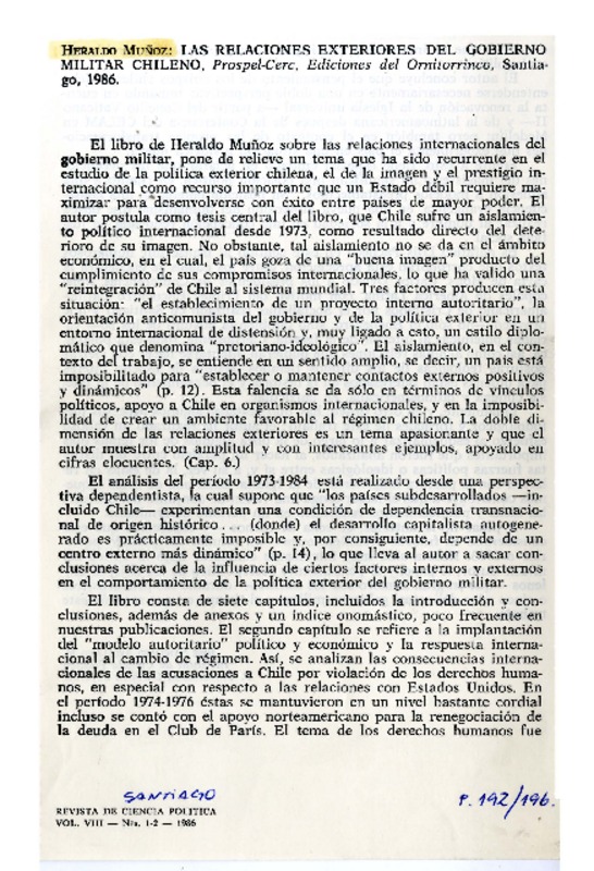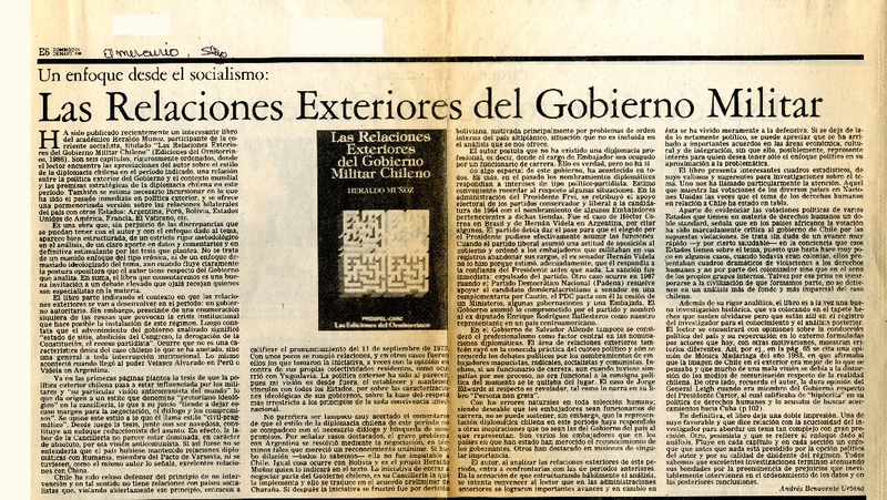 Heraldo Muñoz, "Las relaciones exteriores del gobierno militar chileno" [artículo] Tamara Avetikian B.