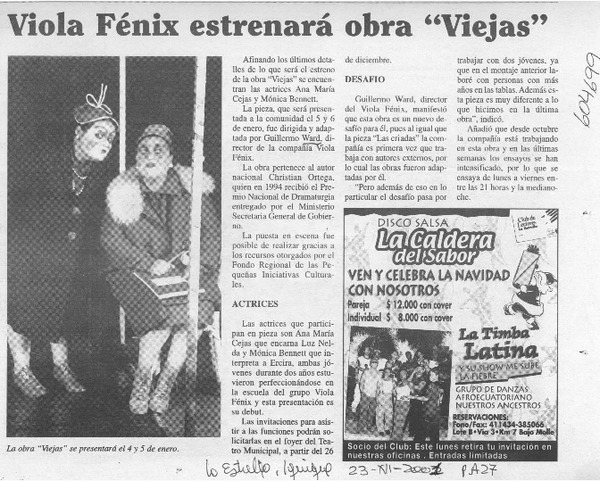 Viola Fénix estrenará obra "Viejas" [artículo]