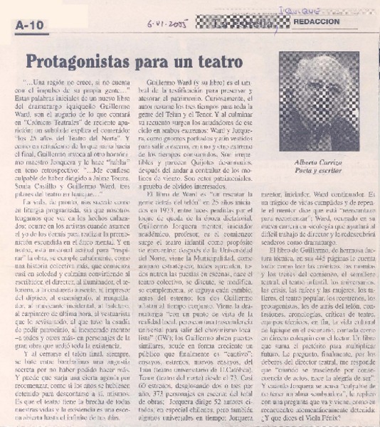 Protagonistas para un teatro [artículo] Alberto Carrizo.