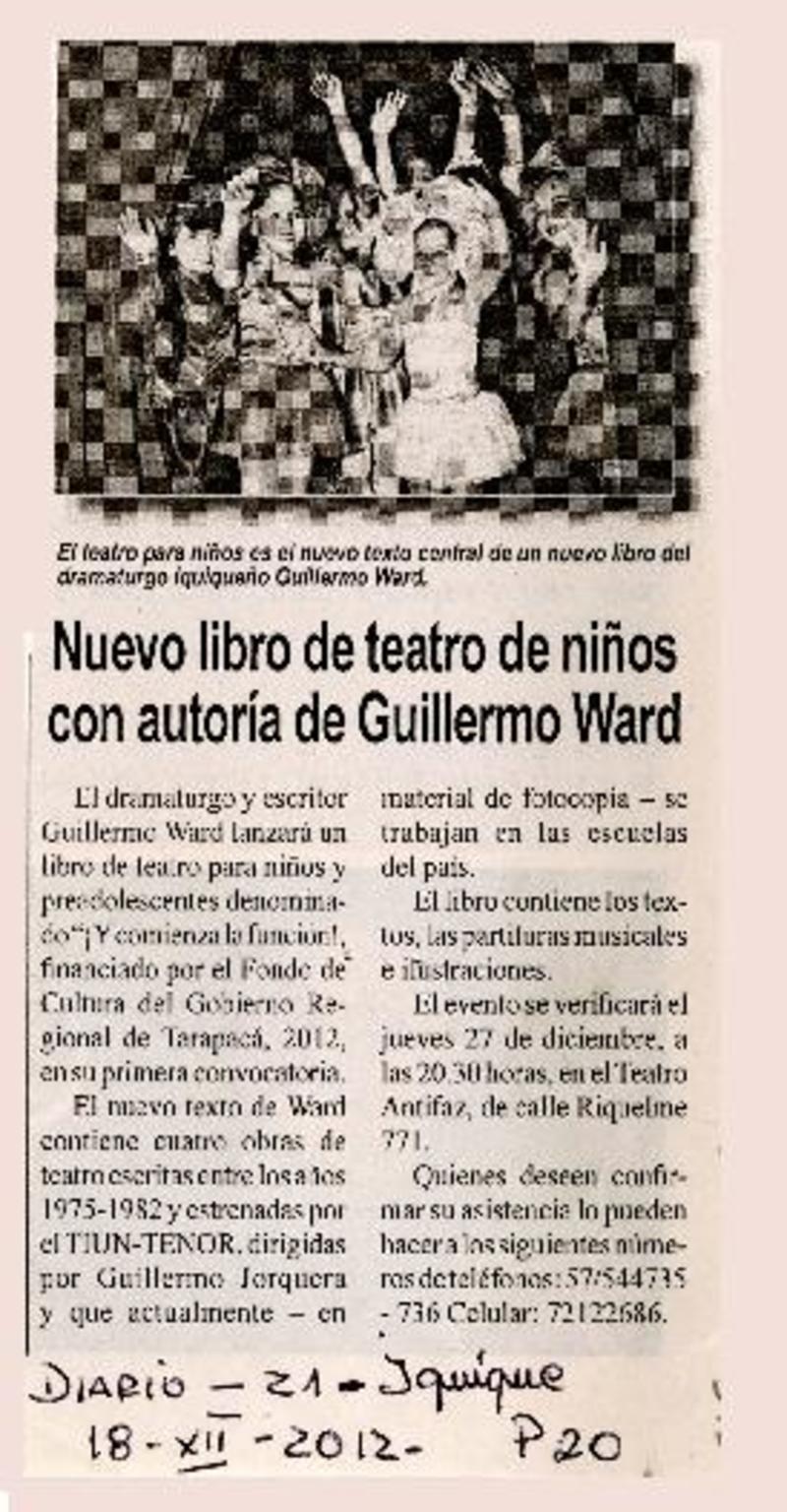 Nuevo libro de teatro de niños con autoría de Guillermo Ward. [artículo]
