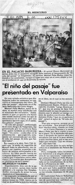 "El niño del pasaje" fue presentado en Valparaíso [artículo].