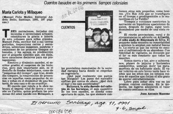 María Carlota y Millaqueo [artículo] Juan Antonio Massone.