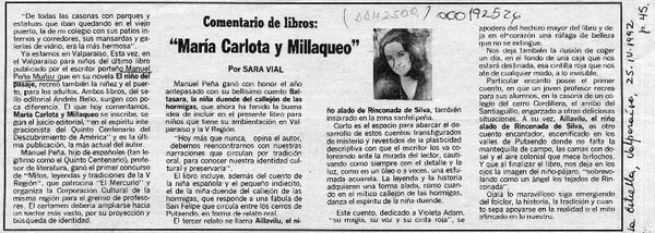 "María Carlota y Millaqueo" [artículo] Sara Vial.