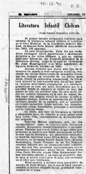 Literatura infantil chilena [artículo] Juan Carlos González Colville.