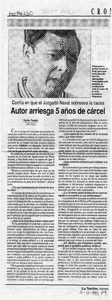 Autor arriesga 5 años de cárcel [artículo] Paulina Foradori.