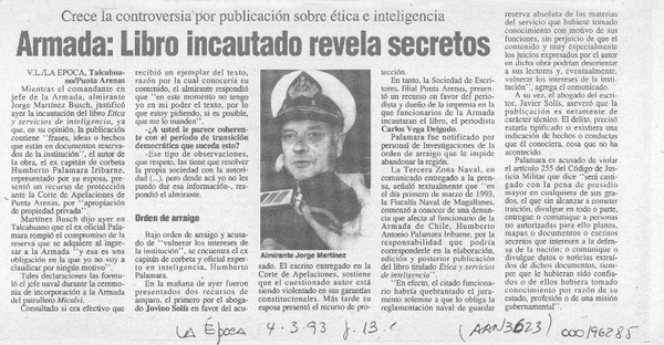 "Autor del libro vulneró los reglamentos de la Armada" [artículo] Patricio Gómez Couchot.