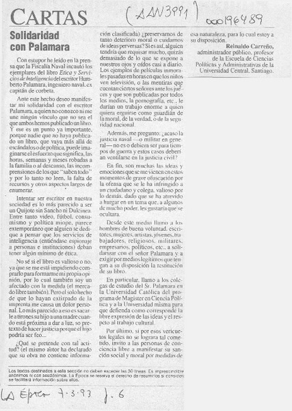 Solidaridad con Palamara [artículo] Reinaldo Carreño.