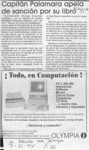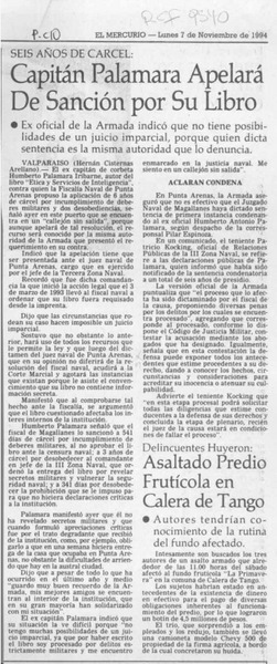 Capitán Palamara apelará de sanción por su libro [artículo].