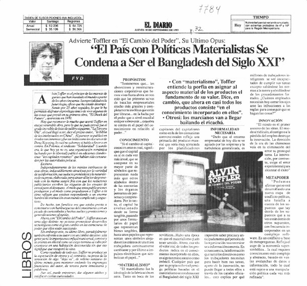 El país con políticas materialistas se condena a ser el Bangladesh del siglo XXI" [artículo] F.V.D.