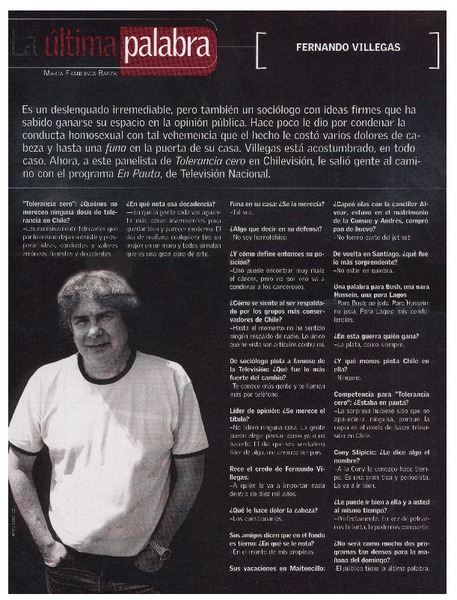 La Ultima palabra : [Entrevista] [artículo] María Francisca Baeza.