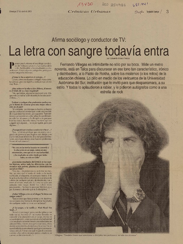 La letra con sangre todavía entra : [entrevista] [artículo] Eduardo Bravo Pezoa.