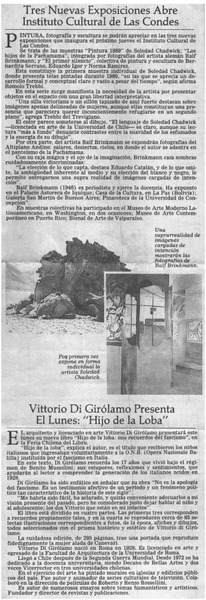 Vittorio Di Girolamo presenta el lunes "Hijo de la loba" [artículo].