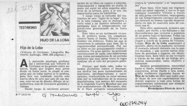 Hijo de la loba [artículo] Hermógenes Pérez de Arce I.