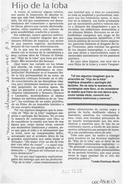 Hijo de la loba [artículo] Tomás Eastman Montt.